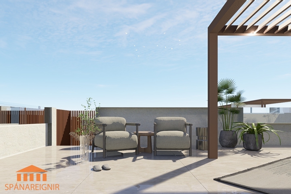 Íbúðum á efri hæð fylgir stór sér þakverönd með frábærri sólbaðsaðstöðu, skemmtilegri grillaðstöðu og góðu útsýni.