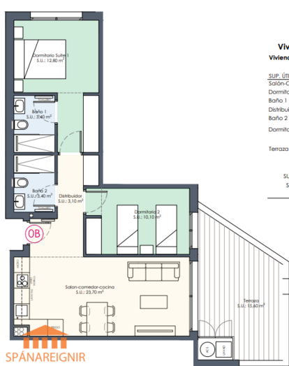 4ra herb. íbúð, 3 svefnh. + 2 baðh. 322.000 evrur (ISK 46.600.000) + 10% skattur og ca. 3% kostn.